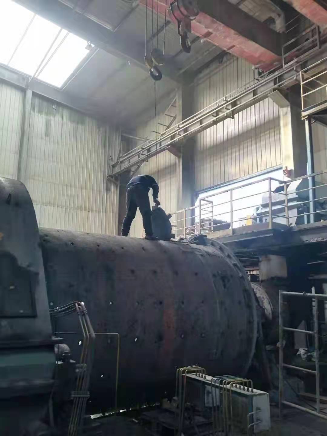26日上午8時(shí),開始對9號球磨機(jī)進(jìn)行停機(jī)倒鋼球作業(yè),相繼開始了一系列的拆裝工作。開始用行車自動(dòng)模式進(jìn)行倒鋼球和拆卸作業(yè),隨著裝襯板難度和危險(xiǎn)系數(shù)的增大,后期行車采用人工手動(dòng)模式作業(yè),通過這種倒行車的辦法,大大提高了工作效率,保證了作業(yè)的精準(zhǔn)和人員的安全。經(jīng)過65個(gè)小時(shí)的連續(xù)奮戰(zhàn),9號球磨機(jī)于3月1日凌晨1:25開機(jī)運(yùn)轉(zhuǎn)。
