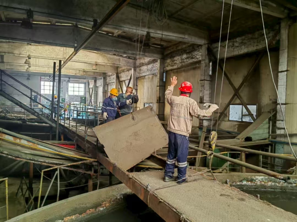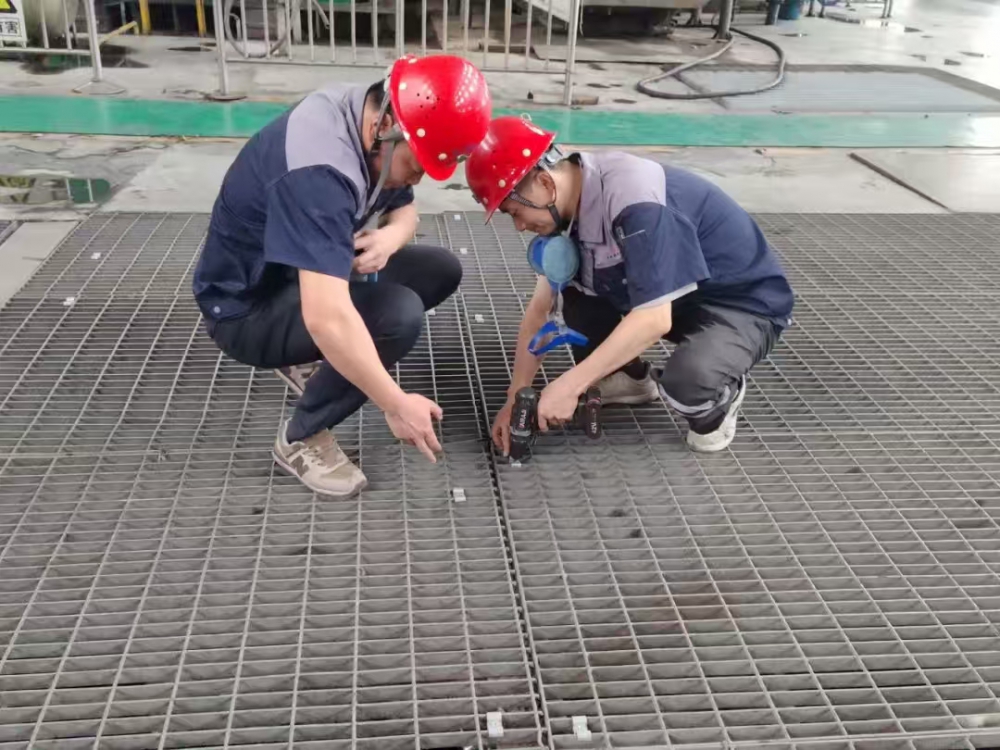 突出問題精準(zhǔn)治理。一選廠已生產(chǎn)運(yùn)行多年,濃密車間人行通道地板腐蝕嚴(yán)重,數(shù)次進(jìn)行修修補(bǔ)補(bǔ),存在較大安全隱患。為徹底解除隱患,公司利用停機(jī)間隙,籌集資金、人力、物資,對70米通道的地板、護(hù)欄、橫梁和支柱進(jìn)行全面拆除更換,有效保障了作業(yè)區(qū)域安全;同時,為汲取內(nèi)蒙古“7.23”格柵板脫落事故的教訓(xùn),切實保障員工及參觀人員的生命安全,公司購買8000套固定卡扣,對兩個選廠磨浮車間格柵板進(jìn)行加固處理,并在參觀通道設(shè)立了安全提示牌。
